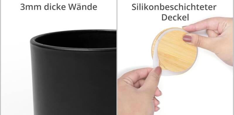 Jedes Glas ist mit einem lackierten Bambusdeckel gepaart, der dem Glas eine natürliche Note verleiht.