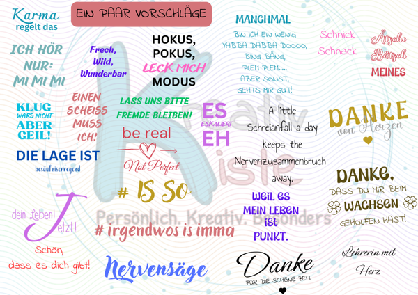 Bitte beschreibe deine gewünschte Personalisierung so genau wie möglich. Gerne kannst du mir eine Vorlage per E-Mail senden, die als Inspiration dient. Beachte jedoch, dass ich keine Kopien erstelle – jedes Design bleibt einzigartig!