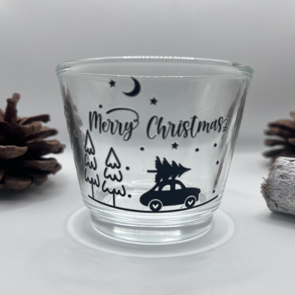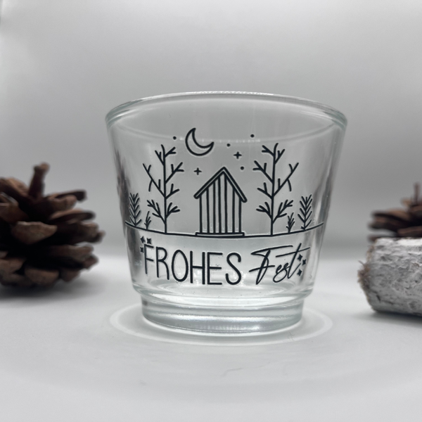 Dieses liebevoll gestaltete Teelichtglas mit weihnachtlichem Motiv sorgt im Handumdrehen für festliche Stimmung.