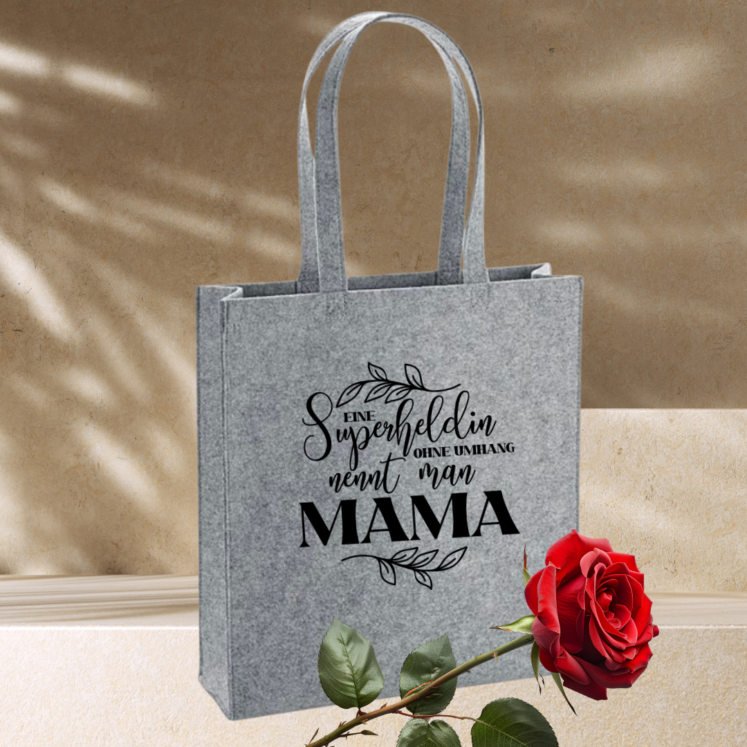 Die robuste Filztasche kombiniert Funktionalität mit Persönlichkeit. Ob für den Einkauf, die Arbeit oder einen Ausflug – sie ist dein praktischer Begleiter mit Charme.
