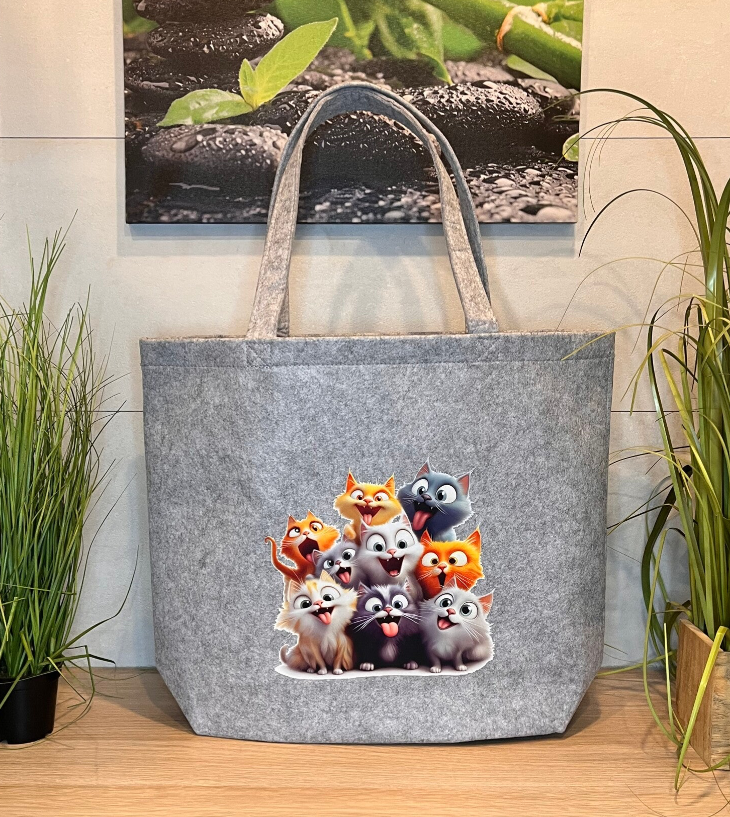 Gefertigt aus stabilem, langlebigem Filz bietet sie ausreichend Platz für Einkäufe, Unterlagen oder alles, was dich durch den Tag begleitet. Die weichen, robusten Henkel sorgen für angenehmen Tragekomfort – egal ob beim Shopping, im Büro oder unterwegs.